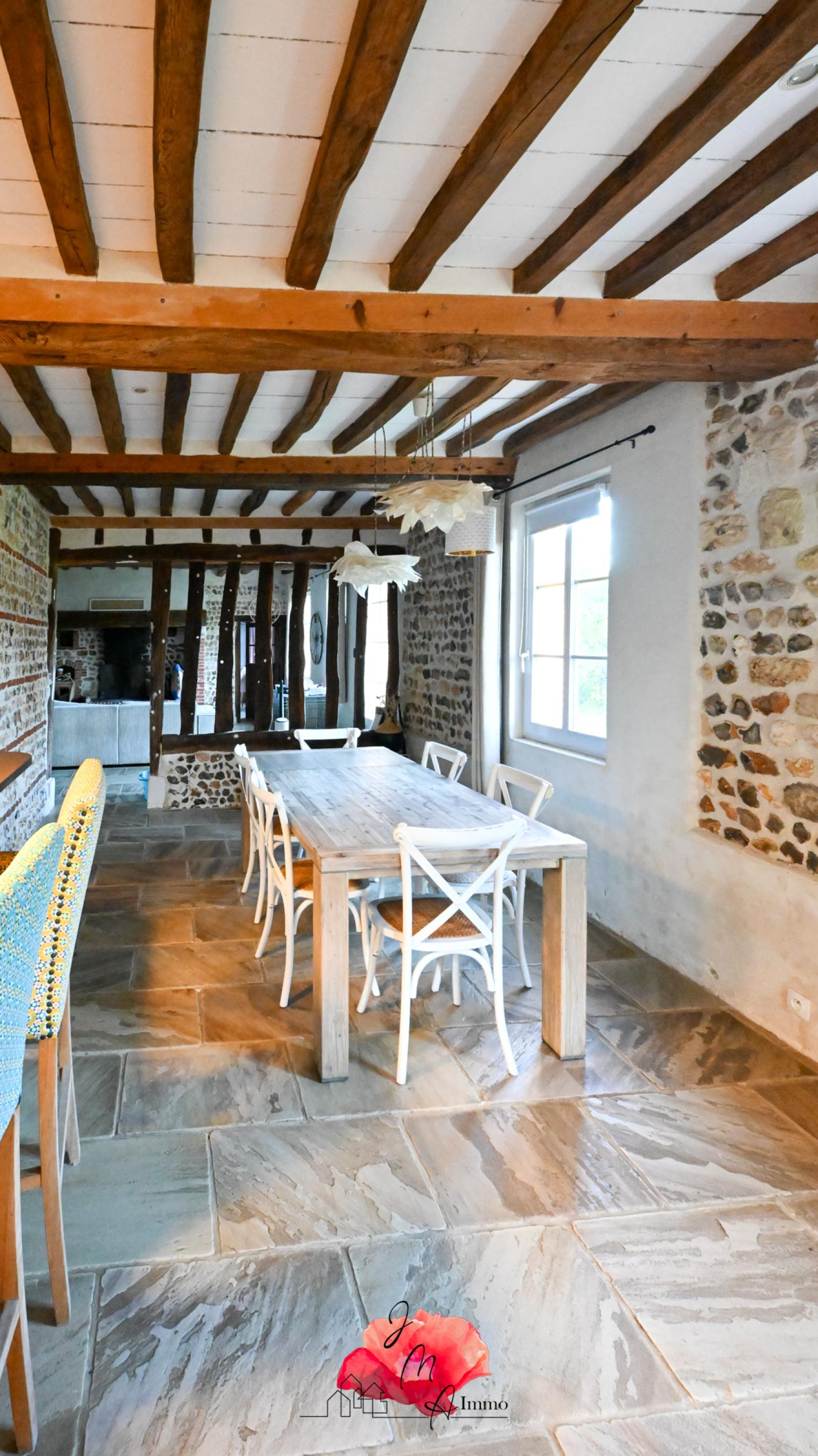 À l’extérieur, une grande dépendance en brique et silex d’environ 80 m² au rez-de-chaussée, avec grenier aménageable, offre un vaste potentiel : projet de gîte, atelier d’artisan, espace de réception ou encore habitation complémentaire.