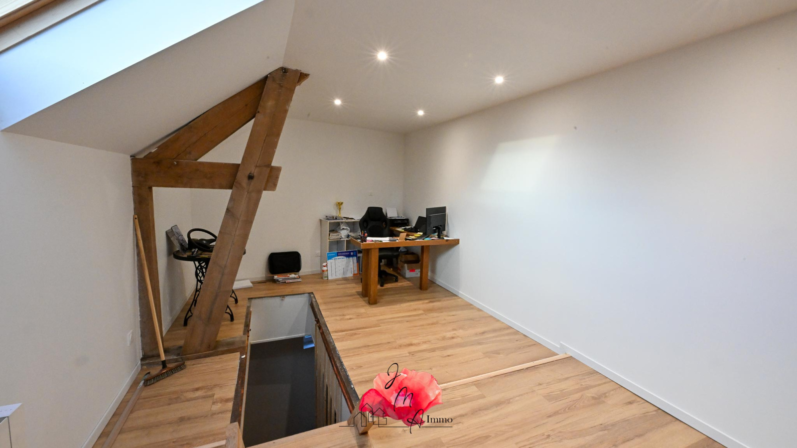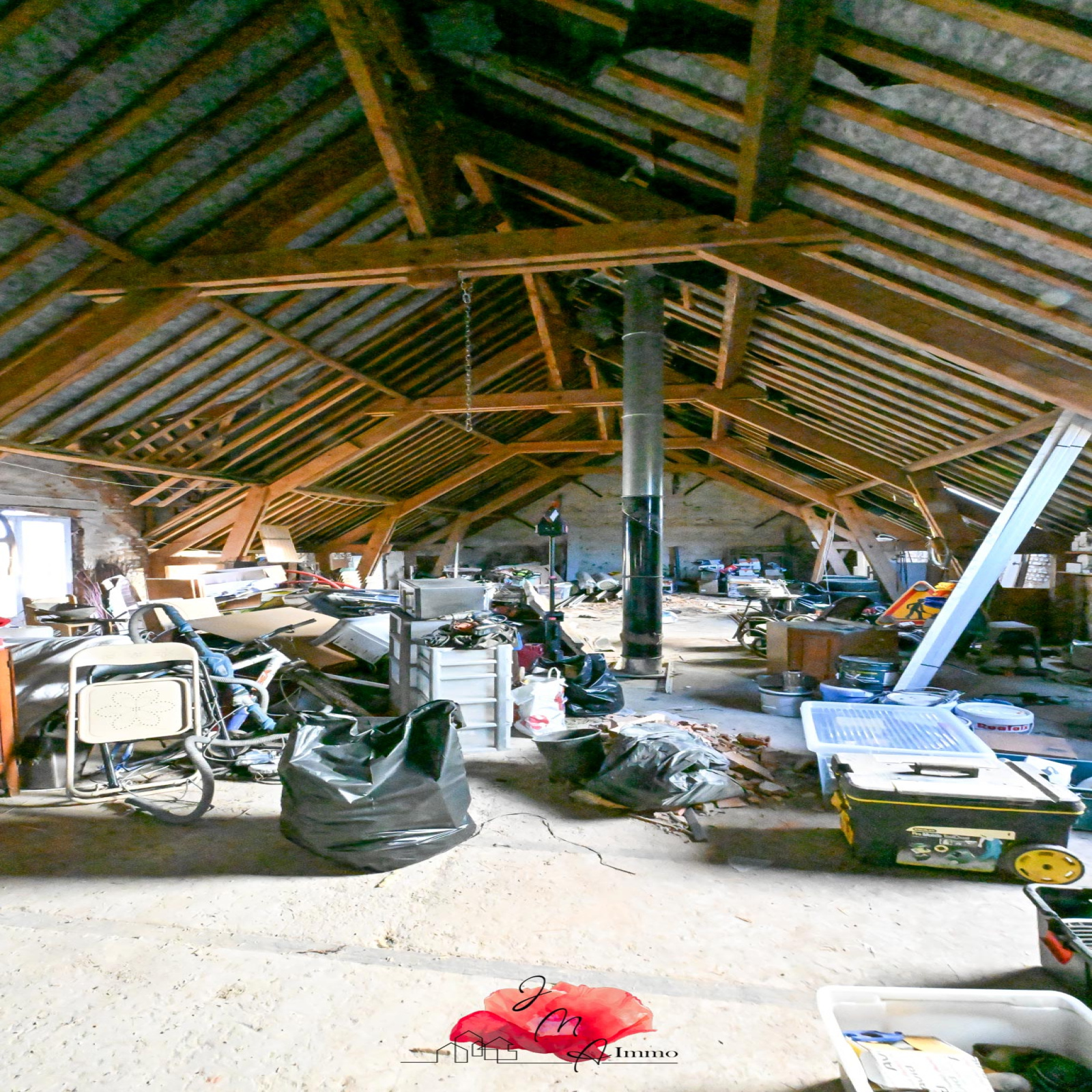 - Un grenier aménageable de 206 m², avec un plancher béton et une charpente cathédrale, sans sous-pente. Cet espace offre des possibilités infinies : chambres supplémentaires, salle de sport, atelier ou espace de vie.