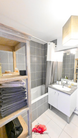 D’une superficie bien agencée, il se compose d’une cuisine aménagée et équipée ouverte sur un séjour spacieux et très lumineux, parfait pour recevoir ou se détendre.