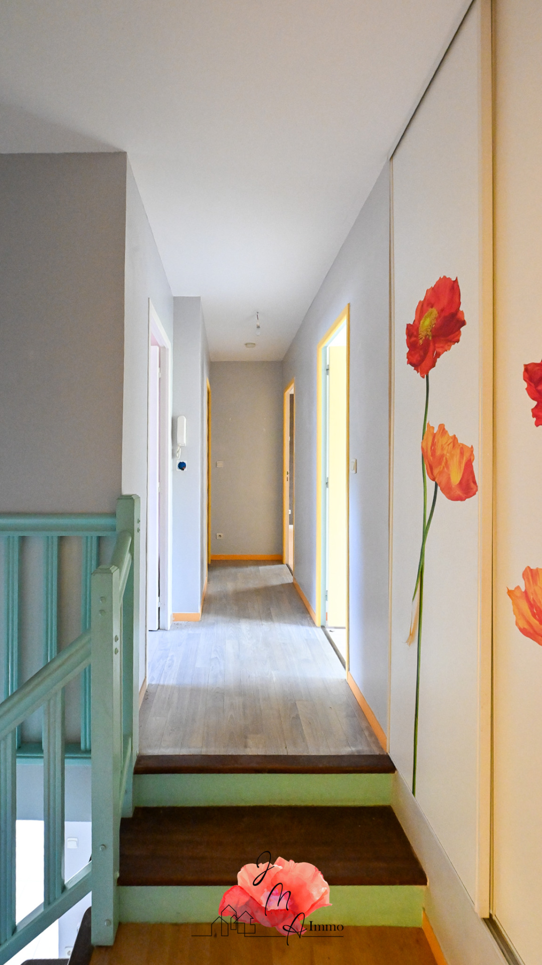À l’étage, la maison se compose de quatre chambres, parfaites pour accueillir une famille, ainsi qu’une salle de bains, une salle de douche, un WC indépendant et une mezzanine offrant un espace supplémentaire à exploiter selon vos besoins (bureau, coin lecture, salle de jeux…).