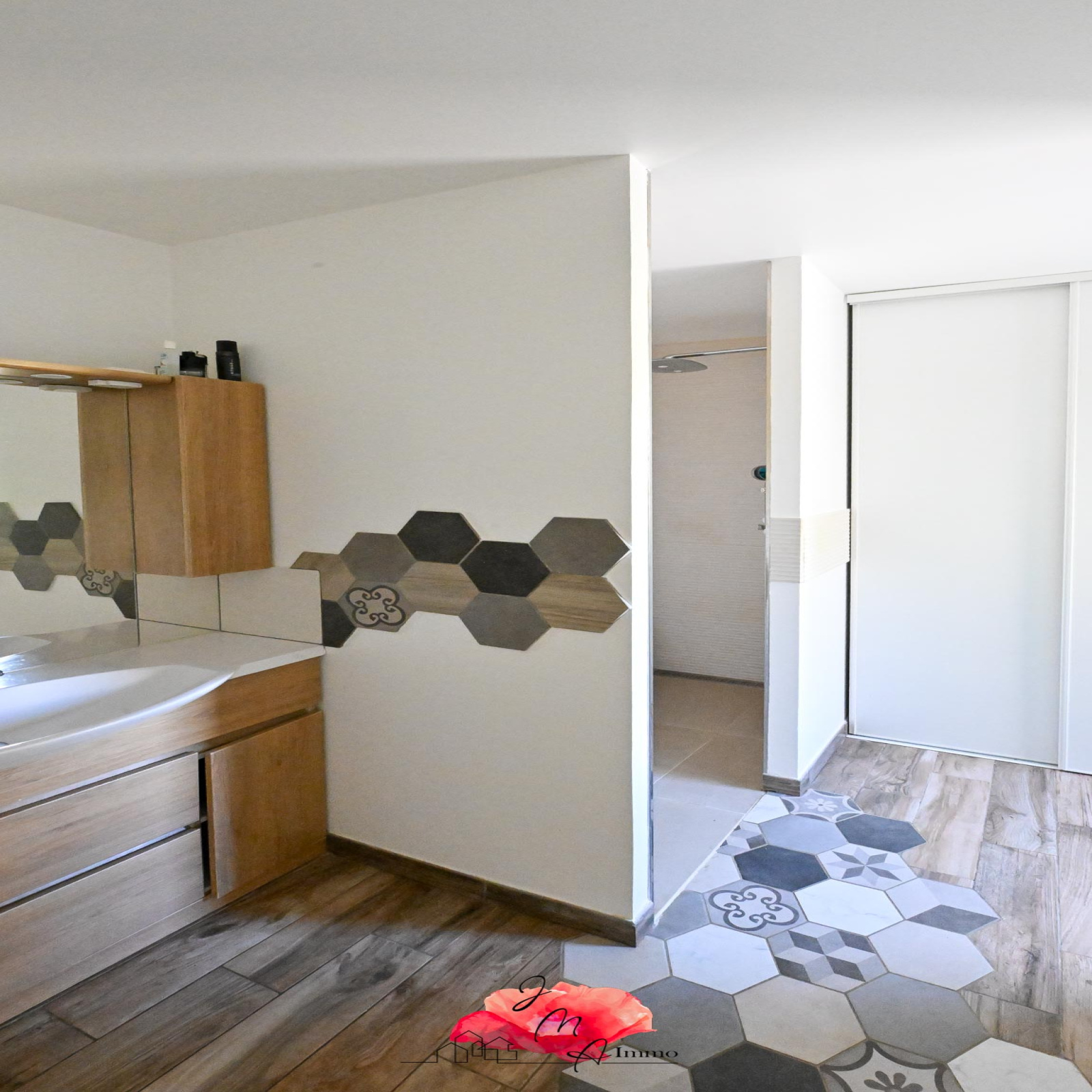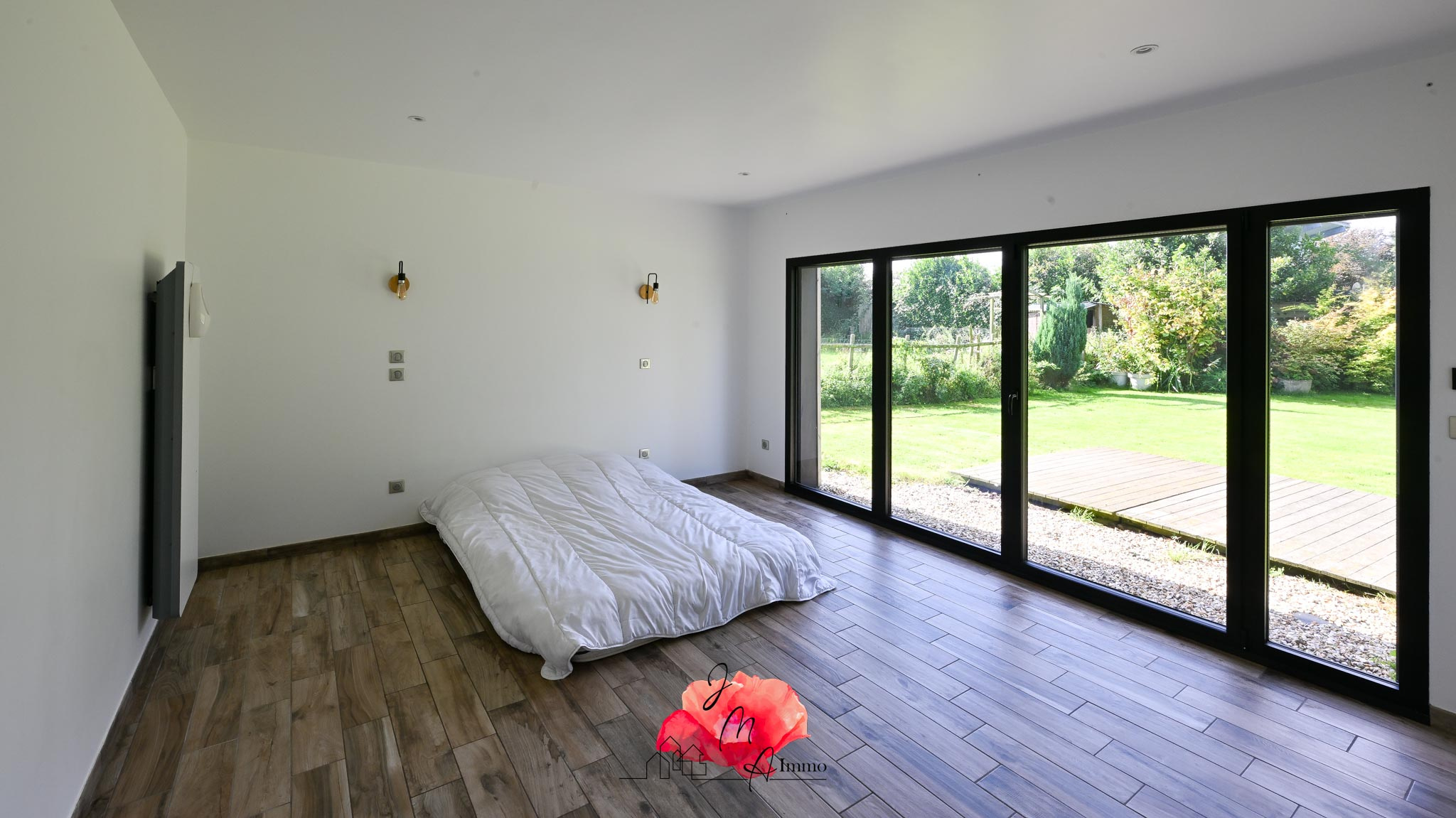 La vie peut s’y dérouler aisément de plain-pied grâce à une grande chambre avec salle de douche et WC au rez-de-chaussée.