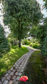 Derrière son élégante toiture de chaume se cache une maison pleine de lumière et de charme, ouverte sur un splendide jardin arboré de près de 1700 m² où chaque saison offre ses couleurs et ses parfums.