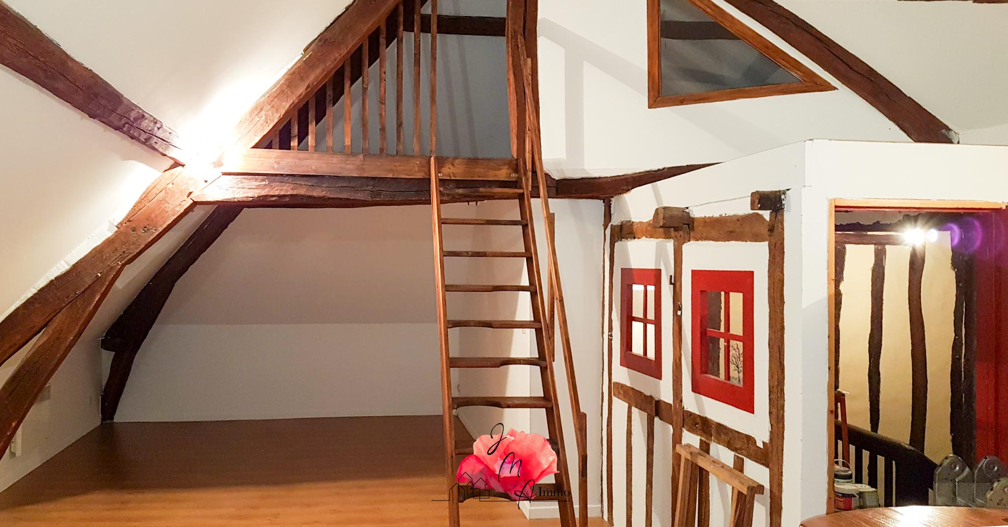 D’une surface de plus de 47 m² exposée plein SUD, ce bien se distingue par son authenticité et son cachet unique grâce à sa structure entièrement en colombages.